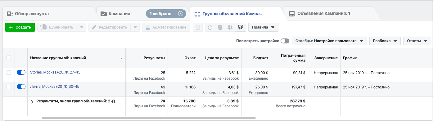 После командного брейншторма и анализа первичных кампаний было принято решение вести таргетированную рекламу с целью: лидогенерация.